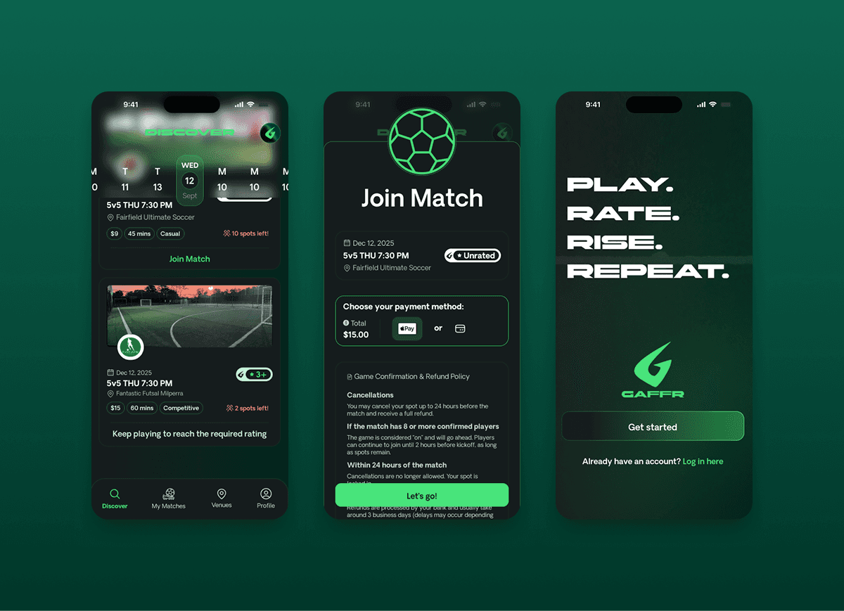 Building Gaffer meant taking a rough idea and turning it into a fully realised product that footballers across Sydney could love.