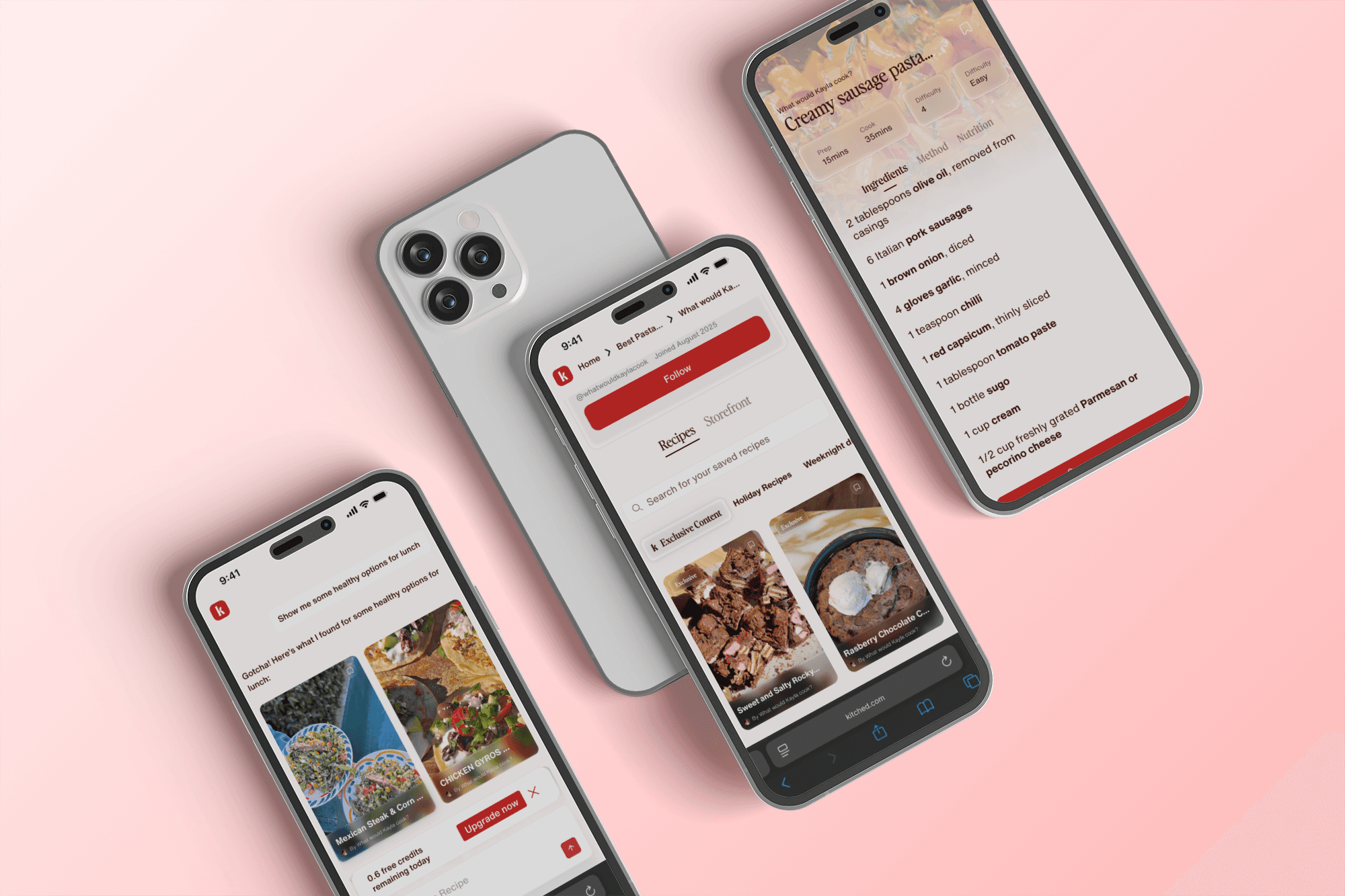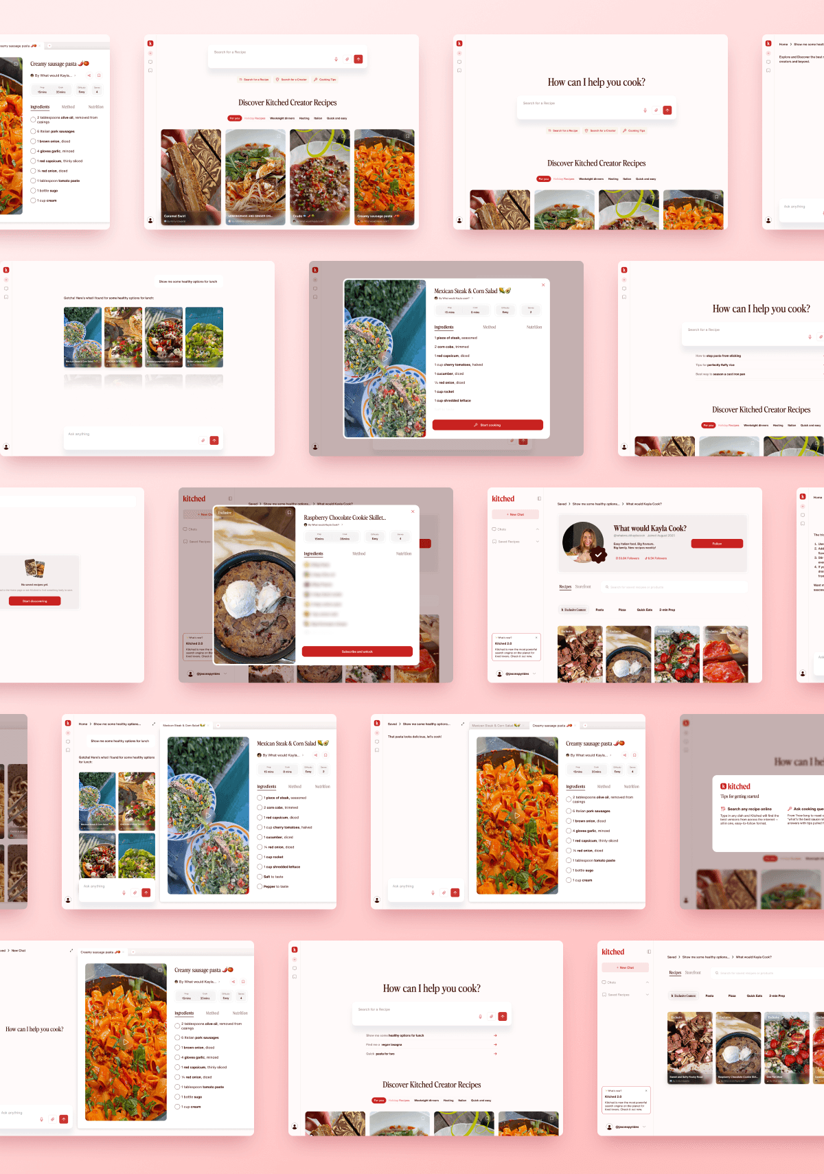 The product had to work beautifully on desktop (for creators) and mobile (for everyday cooks). This doubled the UX surface area and required tight IA, adaptive layouts, and a clean system that held up across all screens.Integrating AI functionality without overwhelming users