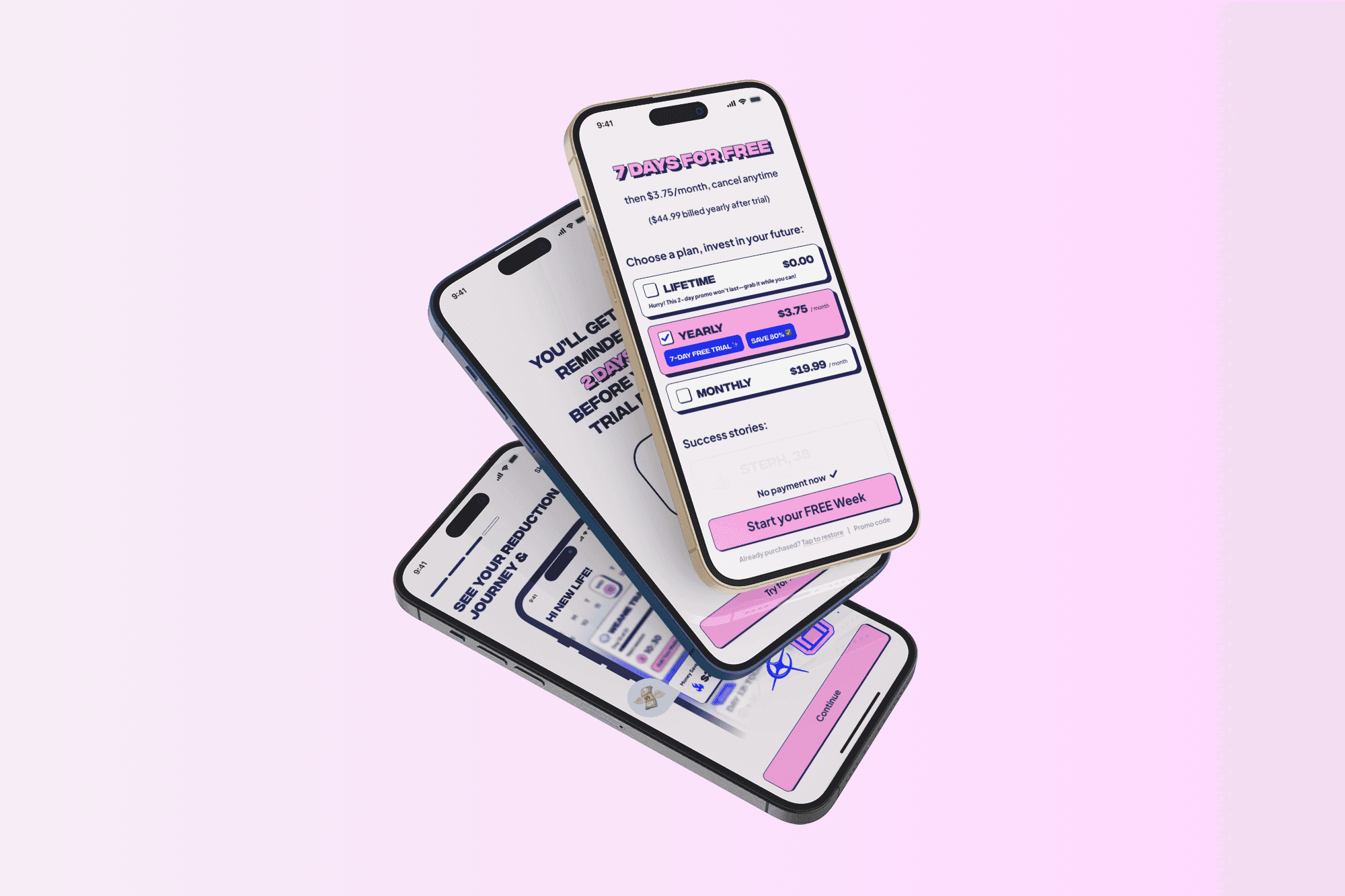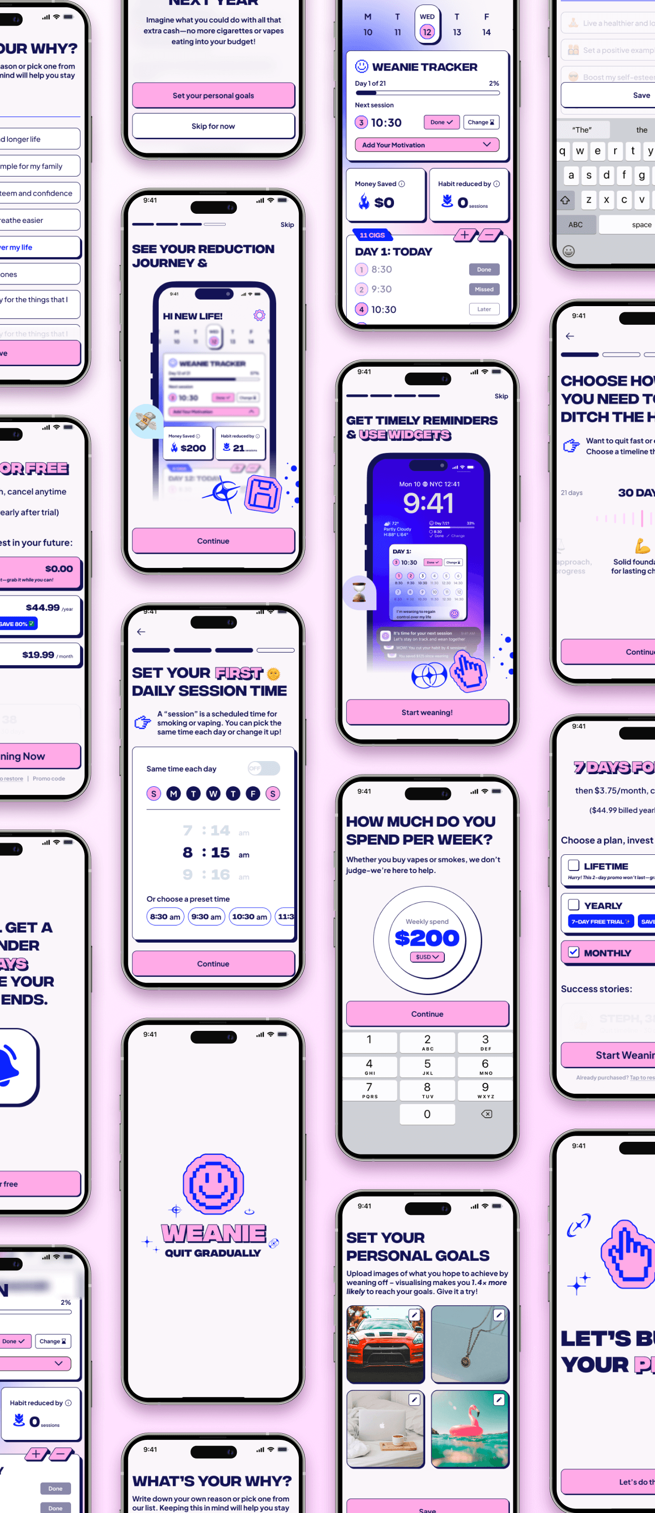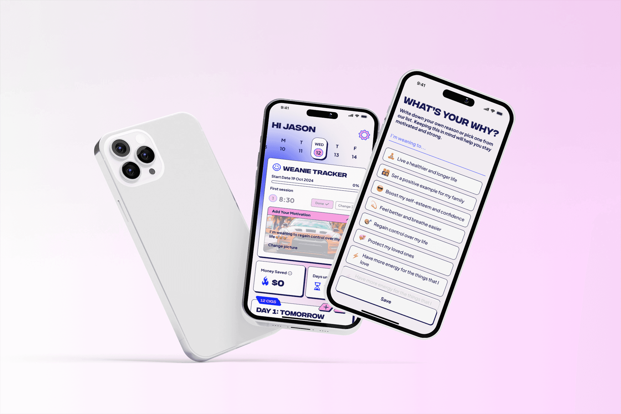 Most quitting apps focus on the “after.” Weanie focuses on the process, the weaning-off itself. Crafting a gradual reduction model that felt achievable, safe, and flexible required deep research into behavioural psychology and habit formation.